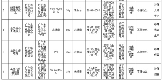 地方各級食品藥品監(jiān)管部門要督促行政區(qū)域內(nèi)化妝品生產(chǎn)經(jīng)營者(含網(wǎng)售)立即對通報的不合格產(chǎn)品一律下架并停止銷售。要對廣州市雅蘭絲化妝品有限公司、廣州東方凱萊化妝品有限公司涉嫌無證生產(chǎn)行為及其生產(chǎn)的全部產(chǎn)品依法嚴(yán)厲查處。要深查深究,追查制售假冒偽劣化妝品的黑窩點,嚴(yán)厲打擊違法違規(guī)行為,涉嫌犯罪的,一律移交公安部門查處,切實保障消費者化妝品使用安全。