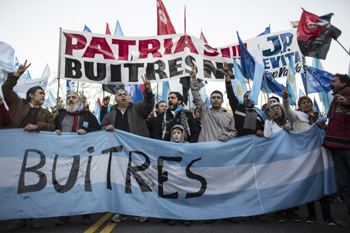 阿根廷政府在《華爾街日報》、《紐約時報》和《華盛頓郵報》刊登整版廣告痛斥“禿鷲基金”惡行,“付錢給禿鷲基金就是走上違約之路”。