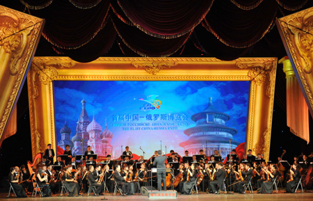 首屆中國-俄羅斯博覽會(huì)29日晚在哈爾濱開幕。中俄博覽會(huì)的前身是已連續(xù)舉辦24屆的中國哈爾濱國際經(jīng)濟(jì)貿(mào)易洽談會(huì)。首屆中俄博覽會(huì)以“新機(jī)遇、新平臺(tái)”為主題。博覽會(huì)期間,將舉辦中俄大型企業(yè)項(xiàng)目合作對(duì)接會(huì)、2014中國(黑龍江)--歐盟投資經(jīng)貿(mào)洽談會(huì)、2014中國(黑龍江)--韓國經(jīng)貿(mào)交流等項(xiàng)目對(duì)接洽談活動(dòng),還將進(jìn)行中俄大學(xué)校長論壇、中俄高層工程技術(shù)合作交流、中俄邊境海關(guān)合作會(huì)議等一系列交流活動(dòng)。圖為6月29日,哈爾濱交響樂團(tuán)在開幕式晚會(huì)上進(jìn)行交響樂演奏。