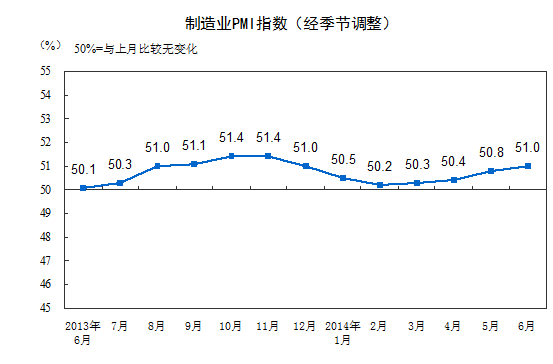 解讀:2014年6月份中國制造業(yè)PMI繼續(xù)保持升勢