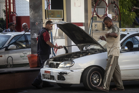 埃及官方通訊社說,埃及政府宣布自5日零時起大幅提高油價,漲幅最高達78%。政府作出這一決定是為削減國家對能源部門的補貼,幫助減輕財政預(yù)算赤字。 圖為當日在埃及首都開羅一個加油站,一名工人為一輛汽車加油。