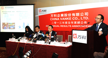 2014年,萬(wàn)科企業(yè)股份有限公司在香港公布2013年度全年業(yè)績(jī)。(資料照片) |