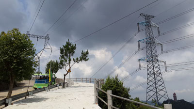南方電網(wǎng)高壓線架設(shè)于觀音山上山必經(jīng)之路之上,距離之近幾近伸手可觸,黃淦波說(shuō),因?yàn)檫@組高壓線,一到陰雨天就沒(méi)人敢上山了。記者 張彬 攝