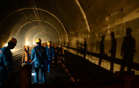 7月30日,來自中鐵一局的近200名施工人員在祁連山1號(hào)隧道內(nèi)抓緊施工(圖二),蘭新鐵路客運(yùn)專線祁連山1號(hào)隧道鋪軌工作線將于31日完成,這標(biāo)志著蘭新鐵路客運(yùn)專線全線鋪軌完成。被譽(yù)為“鋼鐵絲綢之路”的蘭新鐵路客運(yùn)專線,全長(zhǎng)1776公里,設(shè)計(jì)最高運(yùn)營時(shí)速達(dá)250公里,是目前世界上一次性建設(shè)里程最長(zhǎng)的高速鐵路,也是我國首條在高海拔地區(qū)修建的高速鐵路。