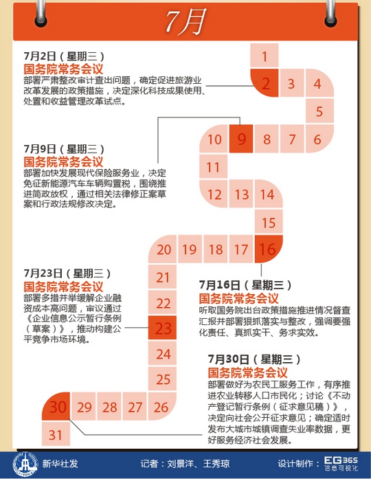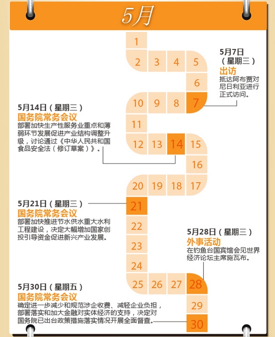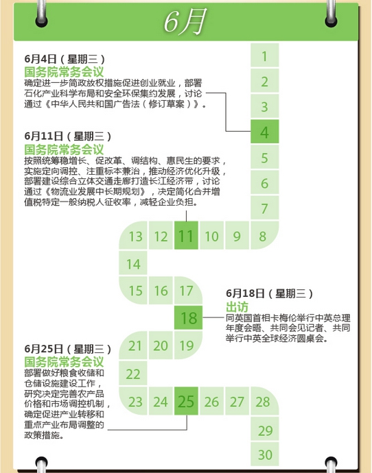 您一周哪天最忙?中國國務(wù)院總理李克強的回答很可能是——星期三。在今年前7個月的31個星期三里,除去元旦、春節(jié)兩次休息、8次出席重要活動或考察出訪、一次未見公開報道,李克強都在主持召開國務(wù)院常務(wù)會議。星期三,成為觀察中國經(jīng)濟轉(zhuǎn)入中高速增長新常態(tài)下的窗口。