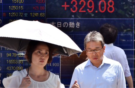 因伊拉克和烏克蘭等地緣政治緊張局勢有所緩和,加之市場認(rèn)為美軍對伊拉克的軍事行動將是有限的,繼上周五紐約股市三大股指全線收高后,11日,亞太股市多數(shù)上漲。其中,日本東京股市錄得四個月以來最大單日漲幅,日經(jīng)股指上漲352.15點,收于15130.52點,漲幅為2.38%。印度尼西亞、菲律賓、中國香港等多個地區(qū)股市主要股指漲幅也超過1%。 圖為行人11日走過日本東京一塊股票價格顯示屏前。