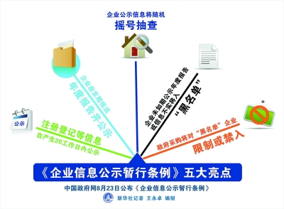 《企業(yè)信息公示暫行條例》,自2014年10月1日起施行。這意味著我國將從主要依靠行政審批管企業(yè),轉(zhuǎn)向更多依靠建立透明誠信的市場秩序規(guī)范企業(yè)。