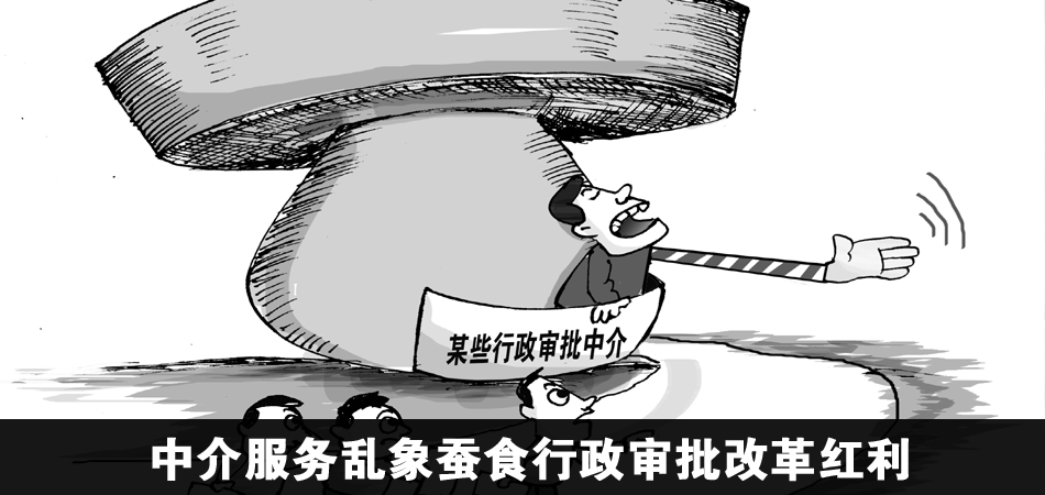 《經(jīng)濟(jì)參考報(bào)》記者近日在多地調(diào)查發(fā)現(xiàn),項(xiàng)目辦理主體一大半時(shí)間、精力和費(fèi)用花在中介環(huán)節(jié),中介組織重復(fù)審批、壟斷市場(chǎng)、收費(fèi)名目混亂等亂象層出不窮。很多中介服務(wù)組織與政府部門(mén)牽扯不清,既是部門(mén)權(quán)力的延伸,也存在利益輸送;鶎痈刹咳罕姳硎,國(guó)家推動(dòng)行政審批制度改革,加大簡(jiǎn)政放權(quán)力度,讓企業(yè)和個(gè)人受益良多,但混亂的中介服務(wù)正吞噬著這些改革紅利,同時(shí)損害著政府的公信力和形象。