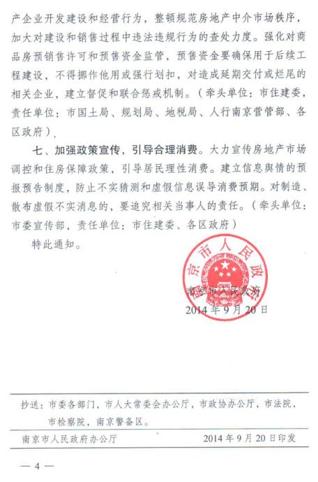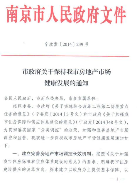 近期,為貫徹落實(shí)國(guó)家住建部“分類調(diào)控”的總體要求,結(jié)合南京實(shí)際,按照《進(jìn)一步加強(qiáng)我市住房保障和供應(yīng)體系建設(shè)的意見(jiàn)》(寧政發(fā)〔2014〕48號(hào)文)要求,經(jīng)市委、市政府研究,就我市房地產(chǎn)市場(chǎng)調(diào)控政策提出了具體意見(jiàn)。