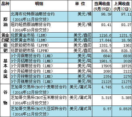 國際大宗商品期貨價格明細(xì)表[2014-9-22]