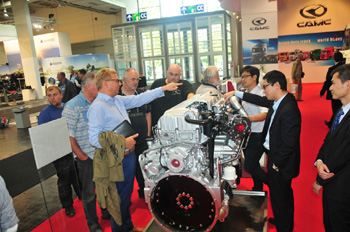 漢諾威車展上,觀眾正在參觀華菱汽車CM6D28發(fā)動機。 陳會松