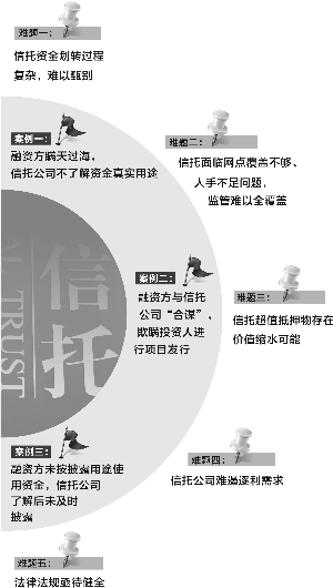 從整個(gè)資管行業(yè)來(lái)看,信托資金挪為他用的行為并非孤例,?顚S脤(shí)踐中很難落實(shí),資金去向更是無(wú)心監(jiān)管。