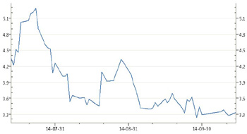 此次下調(diào)之后,正回購(gòu)水平也再次創(chuàng)出3年半以來(lái)的新低。9月18日,14天期正回購(gòu)中標(biāo)利率曾下調(diào)20個(gè)基點(diǎn),至3.5%。