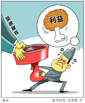 其次,放權(quán)不夠徹底。有的地方受理權(quán)放了,終審權(quán)不放,或者決定權(quán)放了,發(fā)證權(quán)又不放。或者是“沒(méi)好處的容易放,有油水的就不放”。