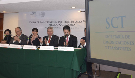 中國鐵建公告,北京時間4日凌晨,墨西哥通信和交通部宣布,中國鐵建與中國南車及4家墨西哥本土公司組成的聯合體中標墨西哥城至克雷塔羅高速鐵路項目,合同金額約合270.16億元人民幣。