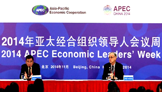 11月6日,APEC秘書處執(zhí)行主任博拉爾德博士在吹風(fēng)會(huì)上回答記者提問。當(dāng)日,“2014中國APEC關(guān)鍵問題與倡議和APEC領(lǐng)導(dǎo)人會(huì)議周”吹風(fēng)會(huì)在北京國家會(huì)議中心舉行!禔PEC經(jīng)濟(jì)趨勢(shì)/貿(mào)易監(jiān)測(cè)分析報(bào)告》也在會(huì)上發(fā)布。新華社記者 畢曉洋/攝