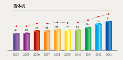 隨著第20架波音777-300ER和首架全新波音747-8先后入列國航機(jī)隊(duì),國航將形成以波音747-8、777-300ER和空客330系列為主的梯次型寬體機(jī)隊(duì)。預(yù)計(jì)到2015年,國航(含國貨航、深圳航空、澳門航空、北京航空、大連航空、內(nèi)蒙古航空)機(jī)隊(duì)規(guī)模將達(dá)到581架左右。其中,窄體客機(jī)464架左右,占比79.9%;寬體客機(jī)93架左右,占比16%;貨機(jī)15架左右,占比2.6%;公務(wù)機(jī)9架左右,占比1.5%,成為擁有中國民航最大寬體機(jī)隊(duì)、365天24小時(shí)全球運(yùn)行的世界級航空公司。