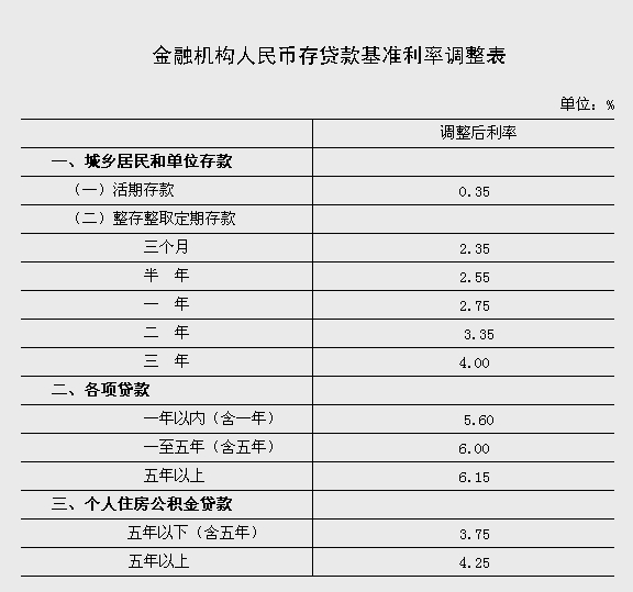 中國人民銀行決定,自2014年11月22日起下調(diào)金融機構(gòu)人民幣貸款和存款基準(zhǔn)利率。金融機構(gòu)一年期貸款基準(zhǔn)利率下調(diào)0.4個百分點至5.6%;一年期存款基準(zhǔn)利率下調(diào)0.25個百分點至2.75%,同時結(jié)合推進(jìn)利率市場化改革,將金融機構(gòu)存款利率浮動區(qū)間的上限由存款基準(zhǔn)利率的1.1倍調(diào)整為1.2倍;其他各檔次貸款和存款基準(zhǔn)利率相應(yīng)調(diào)整,并對基準(zhǔn)利率期限檔次作適當(dāng)簡并。