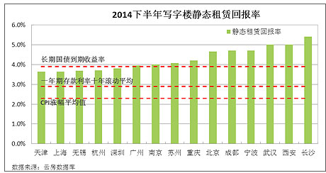 參照寫字樓靜態(tài)租賃回報(bào)率判斷投資時(shí)機(jī)。