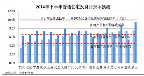 因此,單從各個(gè)回報(bào)率數(shù)據(jù)來(lái)看,普通住宅投資首選城市為沈陽(yáng)、成都的長(zhǎng)線(xiàn)投資,大連、長(zhǎng)沙、武漢、無(wú)錫的短線(xiàn)投資。