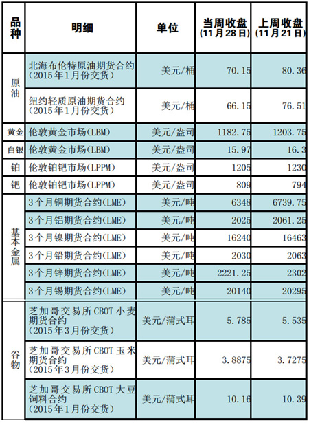 國際大宗商品期貨價(jià)格明細(xì)表[2014-12-1]