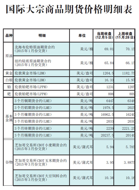 國際大宗商品期貨價(jià)格明細(xì)表[2014-12-8]