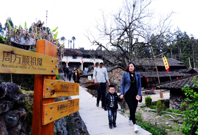 黃林古村。黃林村位于湖嶺鎮(zhèn)西部,坐落在“東甌第一峰”金雞山半山腰,村中錯落有致地分布著68幢共289間青瓦石墻的晚清古民宅,是瑞安現(xiàn)存規(guī)模較大、保存最完整的古村落。村后曲折的溪流,古樸的老屋和村前村后的茂林修竹相得益彰,猶如一幅“屋在林中、林在屋外”的中國山水畫。