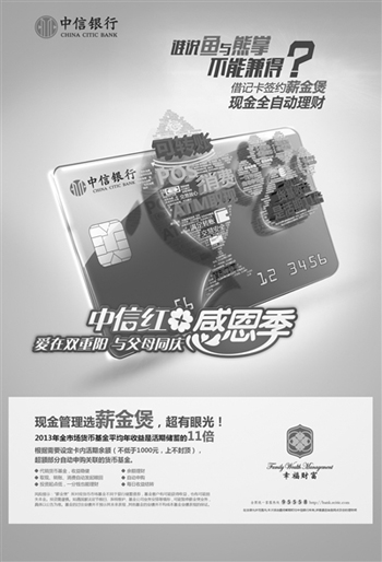 “雖然賺的多了,卻不知道怎樣更合理的理財與消費。”這是時下許多年輕白領所面臨的問題。難以把控的消費開支,復雜的理財產(chǎn)品贖回過程,讓許多人陷入理財與消費的兩難困境。2014年5月中信銀行推出的“薪金煲”業(yè)務輕易的化解了這個難題。據(jù)了解,該業(yè)務是中信銀行與基金公司共同設計并打造的業(yè)內功能領先、客戶體驗優(yōu)質的現(xiàn)金管理工具。它同時具備了余額理財、實時申購份額確認、ATM取款、轉賬、消費、自動贖回、信用卡自動還款、房貸自動還款等強大功能,真正實現(xiàn)“隨用隨取的現(xiàn)金資產(chǎn)管理”的美好設想?梢哉f,“薪金煲”真正讓客戶實現(xiàn)了輕松理財,幸福消費。