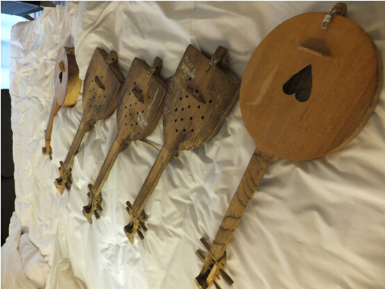四弦琴,是流傳在傈僳族民間的一種古老樂(lè)器,形似小吉他,用木頭制成,共有四根弦,是傈僳族舞蹈中的主要伴奏樂(lè)器之一,更是被稱為是該民族必不可少的文化生活用具。和盛偉提起四弦琴的制作過(guò)程如數(shù)家珍:制作琴的木頭需要晾干木頭內(nèi)的水分,然后用純手工制成,制作時(shí)間需要四天左右。此次孩子們演奏的四弦琴,也都是出自和盛偉之手。