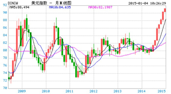 | 美元指數(shù)2008-2014月K線圖 |
