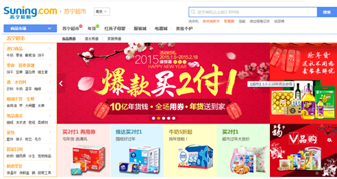 蘇寧超市相關(guān)負(fù)責(zé)人介紹,2015年,蘇寧加快超電器化的步伐,打造線上虛擬、線下實(shí)體的綜合性交易平臺(tái)。蘇寧超市作為重要板塊,承擔(dān)著引流器和增加用戶黏性、復(fù)購(gòu)率的角色。同時(shí),通過(guò)春節(jié)吃、喝等具象化促銷活動(dòng),凸顯蘇寧的全品類形象。