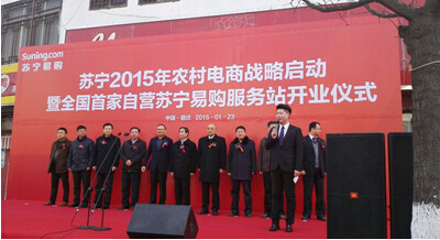 1月23日,蘇寧易購首家自營服務(wù)站在江蘇省宿遷市洋河鎮(zhèn)正式開業(yè),當日,鹽城市龍岡鎮(zhèn)的服務(wù)站也開門迎客,兩家自營服務(wù)站的開業(yè)標志著蘇寧農(nóng)村電商發(fā)展進入自營跟加盟兩種模式共同發(fā)展階段,縣鎮(zhèn)網(wǎng)絡(luò)建設(shè)布局也全面加速。