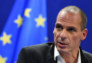2月20日,在比利時(shí)首都布魯塞爾的歐盟總部,希臘財(cái)長瓦魯法基斯出席歐元集團(tuán)特別會(huì)議后召開新聞發(fā)布會(huì)。新華社/法新 |