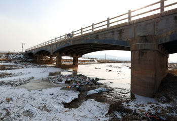 黃河最大支流渭河河床上被傾倒了生活垃圾!
