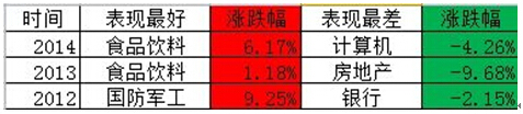 從具體板塊來看,歷史數(shù)據(jù)顯示,在歷年的兩會(huì)期間,往往防御性的板塊例如食品飲料等表現(xiàn)的較好,近年來國防軍工等也有崛起的跡象,房地產(chǎn)、銀行等在近年來往往表現(xiàn)得較差。