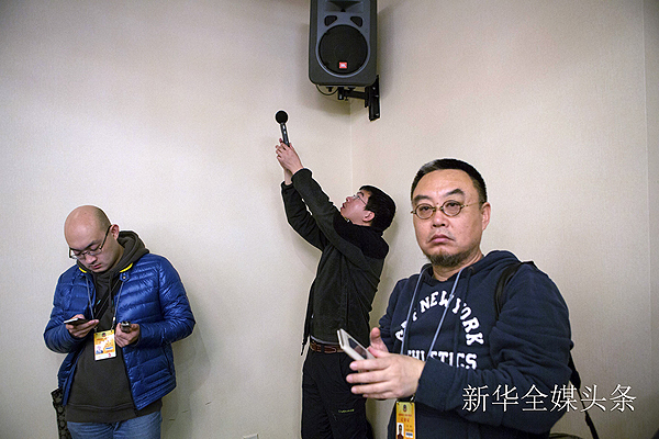 除了自拍神器,舉錄音“神器”也得用這個(gè)pose! 新華社記者 才揚(yáng) 攝