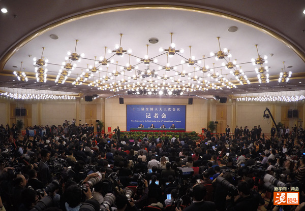 看看這記者會(huì)陣勢(shì),就知道兩會(huì)是有多受關(guān)注啦!新華社記者 邢廣 利攝