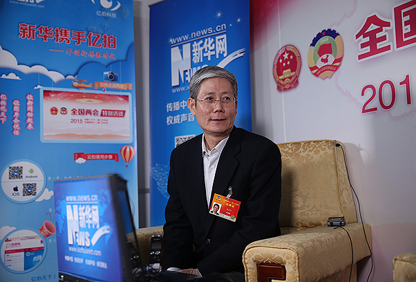 全國(guó)政協(xié)委員傅育寧在人民大會(huì)堂新華網(wǎng)兩會(huì)訪談間接受記者專(zhuān)訪。新華網(wǎng) 王翰林 攝