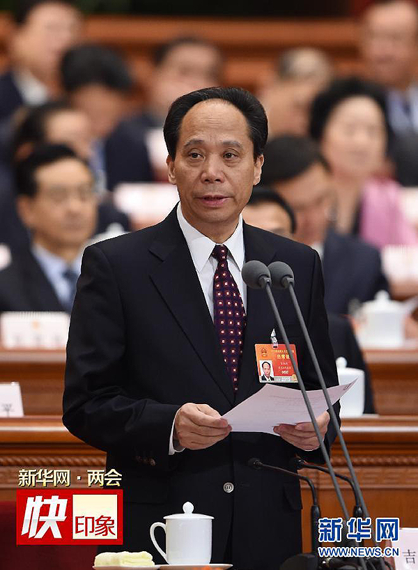 3月12日,十二屆全國人大三次會(huì)議在北京人民大會(huì)堂舉行第三次全體會(huì)議。吉炳軒主持會(huì)議。新華社記者 謝環(huán)馳 攝