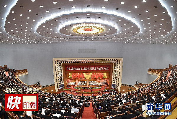 3月12日,十二屆全國人大三次會(huì)議在北京人民大會(huì)堂舉行第三次全體會(huì)議。新華社記者 李然 攝