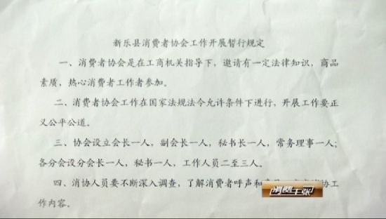 圖:河北省新樂(lè)縣消費(fèi)者協(xié)會(huì)工作開(kāi)展暫行規(guī)定 《消費(fèi)主張》記者狄曉璐了解到,我國(guó)第一個(gè)消費(fèi)者組織能夠誕生,有一位關(guān)鍵的人物叫袁榮申。在河北省消協(xié)和工商局的幫助下,記者終于見(jiàn)到了88歲的袁榮申老先生。