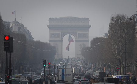 法國(guó)巴黎警察局3月23日在首都巴黎及周邊3個(gè)省份臨時(shí)采取車(chē)輛單雙號(hào)限行等緊急措施,應(yīng)對(duì)空氣嚴(yán)重污染現(xiàn)象。近一周來(lái),受無(wú)風(fēng)無(wú)雨天氣影響,由道路交通、春季農(nóng)作物播種施肥及工業(yè)生產(chǎn)等人類(lèi)活動(dòng)排放到大氣中的各類(lèi)污染物難以驅(qū)散,造成巴黎大區(qū)及法國(guó)北部多處地區(qū)空氣質(zhì)量明顯下降。
