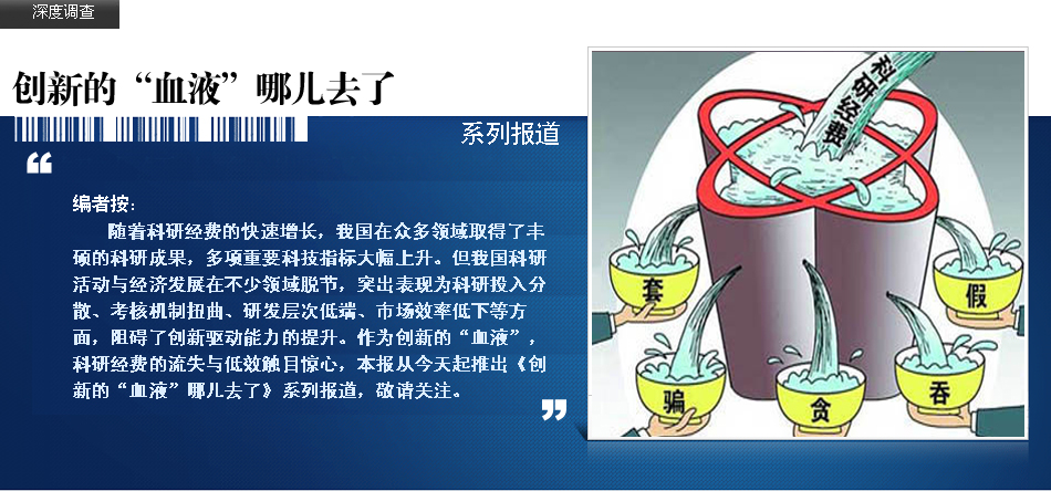 | 統(tǒng)計顯示,2006年以來,我國科研投入進入快速增長時期,2013年我國全社會研發(fā)投入已達1.19萬億元,占全球研發(fā)投入比重達到11.7%,規(guī)模居世界前列。多家科技型企業(yè)負責人對《經濟參考報》記者反映,隨著科技經費快速大幅增長,科研管理體制中的某些弊端也暴露無遺,一些政策縫隙被撕裂、政策漏洞被擊穿,科技投入中途截流、跑冒滴漏普遍,甚至被套取挪用。 | |