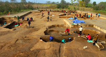 黃河是中華民族的母親河,她的兩岸孕育了璀璨的古代文明。遠古時期的豫西、晉南和整個陜西大地上,土地肥沃,溝壑縱橫,氣候濕潤,河流成網(wǎng),湖泊、沼澤、水洼星羅棋布,棲息和繁衍著大量的古代人類,他們在黃帝和炎帝的帶領(lǐng)下,在茹毛飲血中創(chuàng)造著燦爛的仰韶文化。如果把豫、陜、晉三角地帶比作是仰韶文化時期人類文明的一頂皇冠的話,那么北陽平遺址群就是皇冠頂端那顆最璀璨、最耀眼的明珠,而西坡遺址又恰好就居于這顆明珠的核心部位。西坡遺址占地60多萬平方米,在鑄鼎原眾多的遺址中鶴立雞群,氣度不凡。