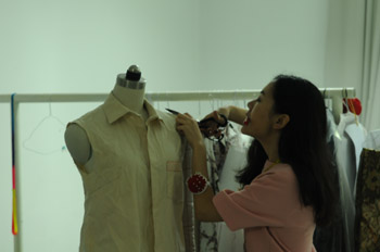 | 石芮子在工作室設(shè)計新款服飾 資料照片 |