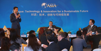 在博鰲亞洲論壇的最后一日,蓋茨、特斯拉汽車(chē)CEO埃隆·馬斯克和百度總裁李彥宏進(jìn)行了一場(chǎng)主題為“技術(shù)、創(chuàng)新與可持續(xù)發(fā)展”的討論。李彥宏通過(guò)百度貼吧搜集了500多個(gè)問(wèn)題,代表中國(guó)網(wǎng)友向兩位國(guó)際大咖發(fā)問(wèn)。