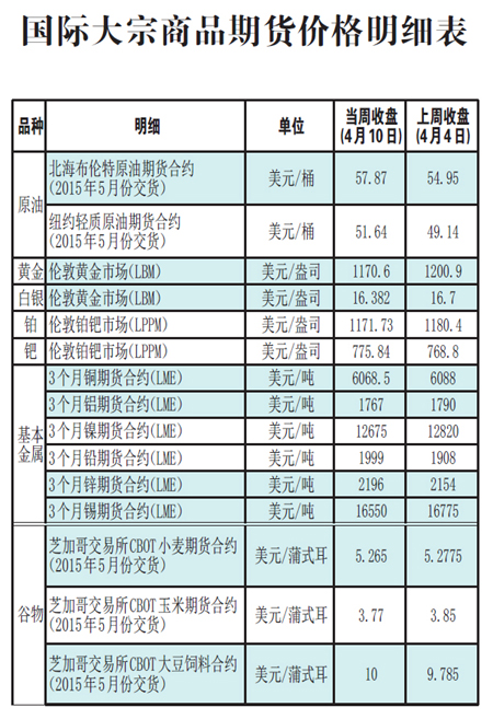國際大宗商品期貨價格明細(xì)表[2015-4-13]