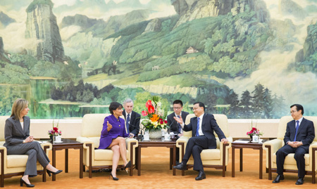 4月13日,國務(wù)院總理李克強在北京人民大會堂會見美國總統(tǒng)代表、商務(wù)部長普里茨克和她率領(lǐng)的“總統(tǒng)貿(mào)易代表團”一行。李克強指出,經(jīng)貿(mào)關(guān)系是中美關(guān)系的“壓艙石”,中美經(jīng)濟高度互補,在基礎(chǔ)設(shè)施、能源、信息、環(huán)保等諸多領(lǐng)域擁有廣闊合作空間。李克強希望雙方加快推進以準入前國民待遇和負面清單管理模式為基礎(chǔ)的雙邊投資協(xié)定談判,盡早談成一個高水平、雙向平衡的協(xié)定,提升兩國貿(mào)易投資合作水平。