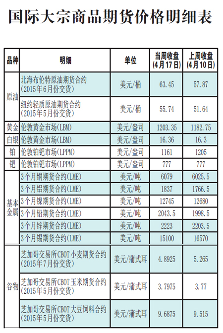 國(guó)際大宗商品期貨價(jià)格明細(xì)表[2015-4-20]