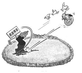 在球場(chǎng)違規(guī)建設(shè)并存續(xù)的同時(shí),海涂林場(chǎng)的一些職工一直在為取締違規(guī)高爾夫球場(chǎng)而奔忙。職工們多次反映后也曾引起過(guò)重視,國(guó)土資源部等部門(mén)曾于2008年5月11日對(duì)悅達(dá)高爾夫的發(fā)球臺(tái)、球道及果嶺進(jìn)行了強(qiáng)制拆毀并恢復(fù)原貌為公園,可惜一年后又被重新恢復(fù)為高爾夫球場(chǎng)。射陽(yáng)縣體育局一份公開(kāi)文件則顯示,2008年5月12日局有關(guān)人員前往射陽(yáng)島體育公園實(shí)地辦公,將縣政府采購(gòu)的12套健身路徑和省體育局下?lián)艿囊惶捉∩砺窂揭黄鹚椭辽潢?yáng)島生態(tài)體育公園并全部安裝到位。今年1月底,《經(jīng)濟(jì)參考報(bào)》記者在射陽(yáng)縣體育局副局長(zhǎng)劉叢坤的陪同下走進(jìn)悅達(dá)高爾夫發(fā)現(xiàn),當(dāng)年下?lián)艿?3套健身器材依稀可見(jiàn)殘存的少部分,但顯然已經(jīng)很少人使用,多數(shù)淹沒(méi)在球道邊側(cè)和草坪中間。針對(duì)體育公園為什么不讓老百姓進(jìn)入的問(wèn)題,劉叢坤笑著表示:“體育公園主打項(xiàng)目是高爾夫,不還是體育類(lèi)的嗎?”